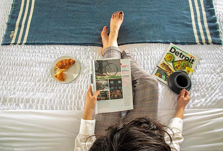Food and drink options add to the downtown Detroit vibe. On-site Burroughs Coffee Shop serves American fare in a modern setting, perfect for a quick bite or a caffeine boost before a day of sightseeing. Right across the street, Batch Brewery offers another easy option to grab a drink and unwind after a day of exploring.